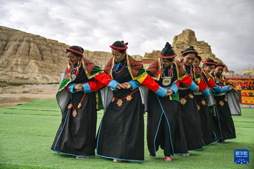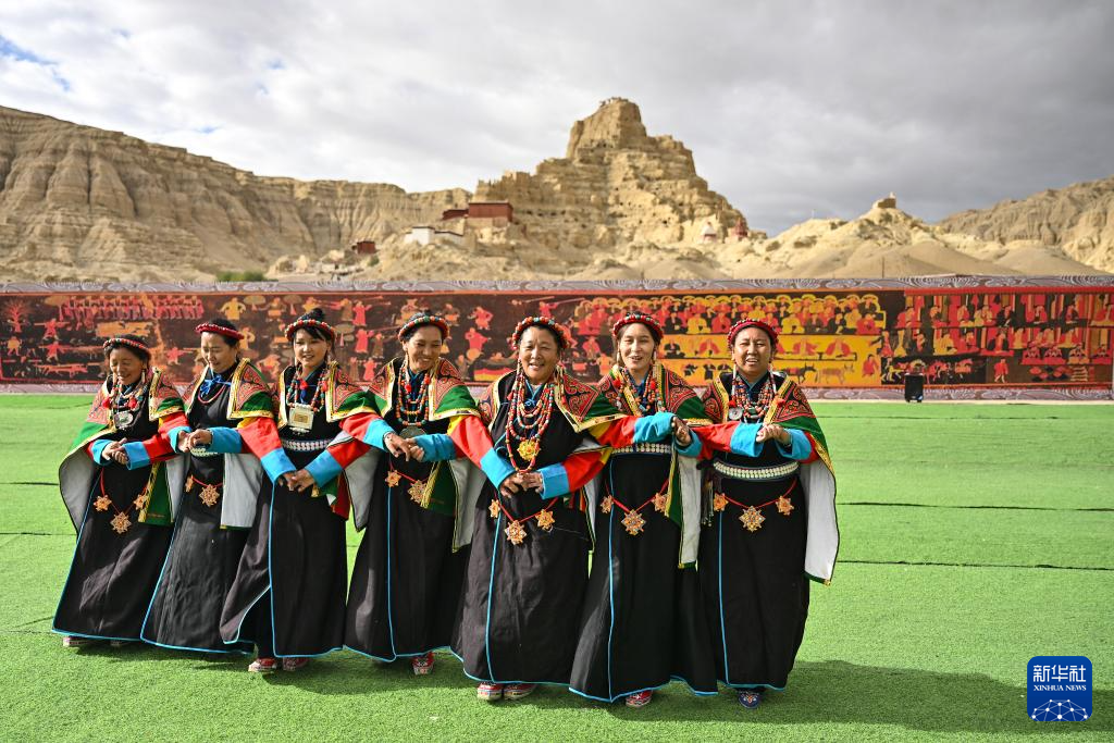 在西藏阿里地區(qū)札達(dá)縣古格王國(guó)遺址腳下,當(dāng)?shù)卮迕癖硌荨靶琛保?月11日攝)。新華社記者 孫瑞博 攝 ??