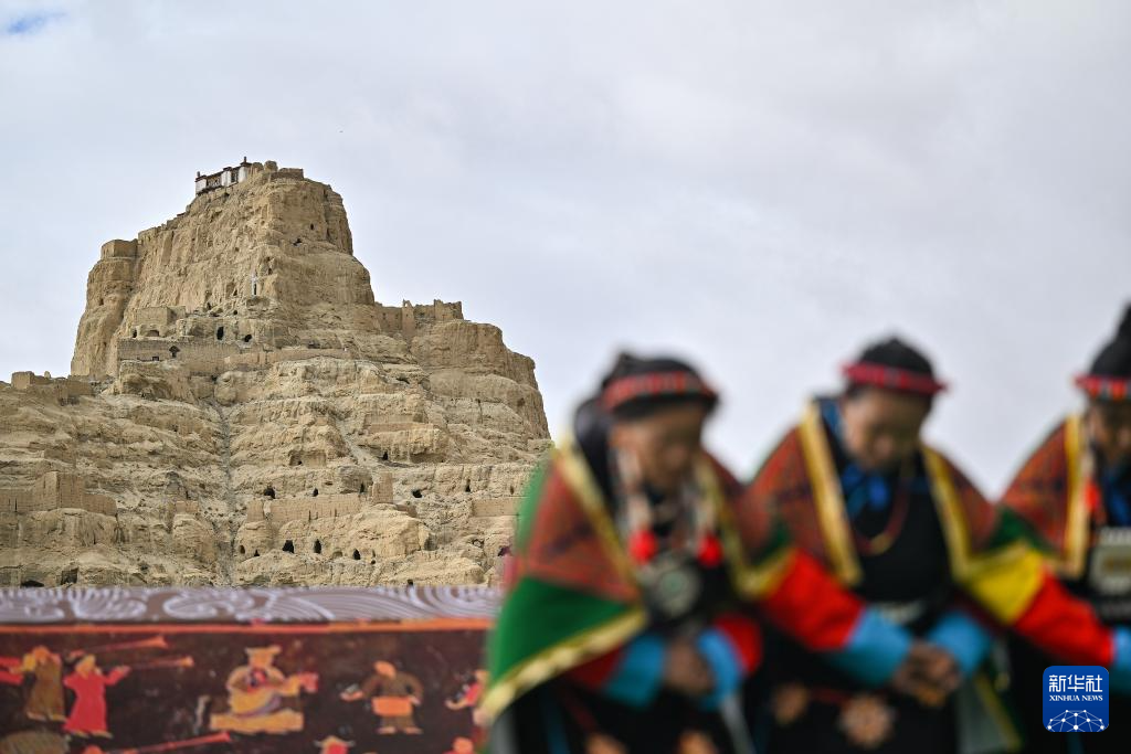 在西藏阿里地區(qū)札達(dá)縣古格王國(guó)遺址腳下,當(dāng)?shù)卮迕癖硌荨靶琛保?月11日攝)。新華社記者 孫瑞博 攝