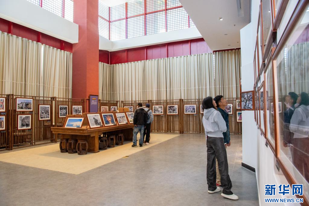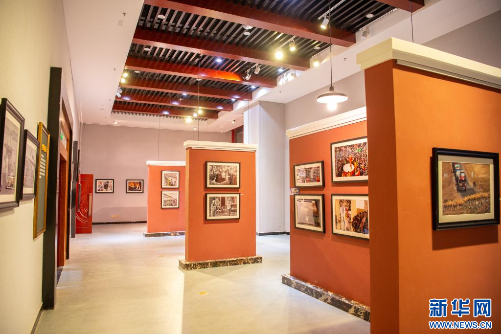 9月30日拍攝林芝美術(shù)館參觀“國社之鏡·世紀(jì)光影”新華社新聞攝影展林芝分展一角。新華網(wǎng) 旦增努布 攝