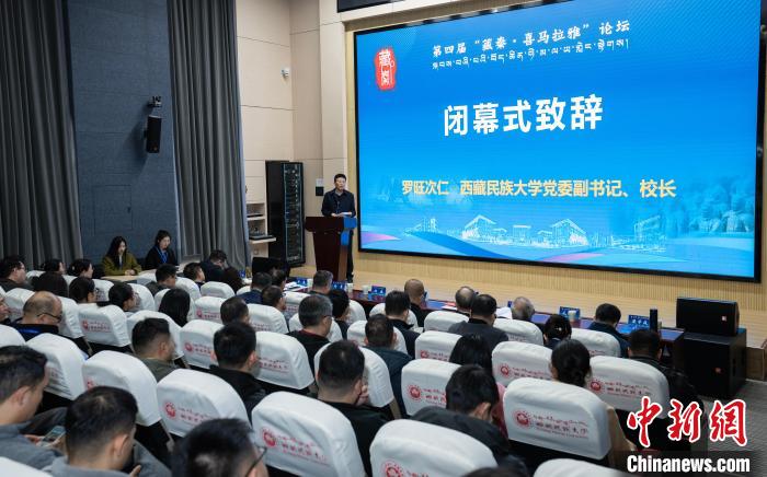 西藏民族大學(xué)黨委副書(shū)記、校長(zhǎng)羅旺次仁在第四屆“藏秦·喜馬拉雅”論壇閉幕式上發(fā)表致辭?!≈鬓k方供圖