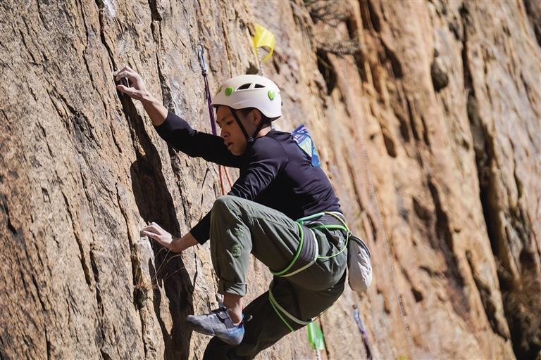 經(jīng)過激烈的角逐,來自四川攀多拉攀巖俱樂部的宋梟和陜西省攀巖隊(duì)的向紅春分別奪得男、女子難度賽冠軍。