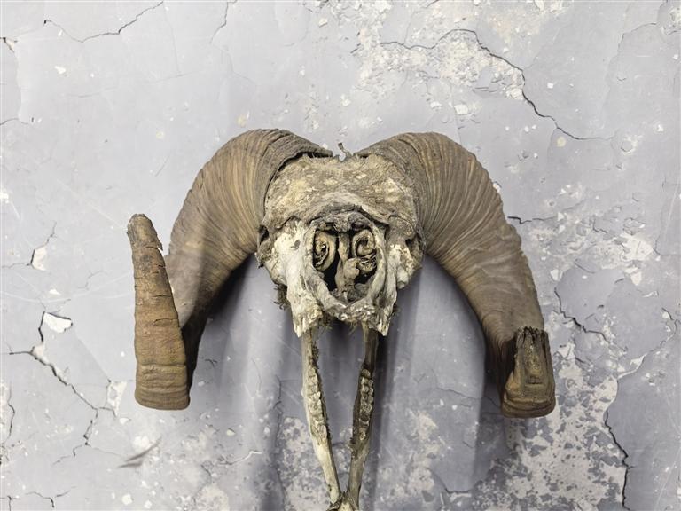 巖羊頭骨(含角)。