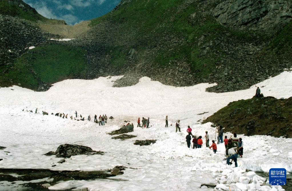 西藏墨脫地處雅魯藏布江大拐彎的下游,四周為巖層不穩(wěn)定的雪山所包圍。這是夏季8月,工人們挖開(kāi)9米厚的冰川修筑公路。新華社記者 丁力 攝(1990年11月19日發(fā))