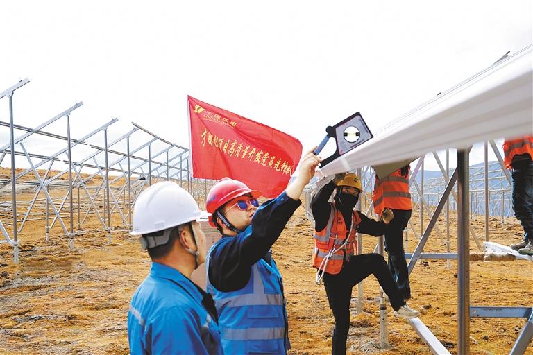 圖為華電西藏才朋光儲二期項(xiàng)目黨員先鋒隊的黨員們在施工現(xiàn)場進(jìn)行維護(hù)作業(yè)。 記者 袁海霞 鄭璐 攝
