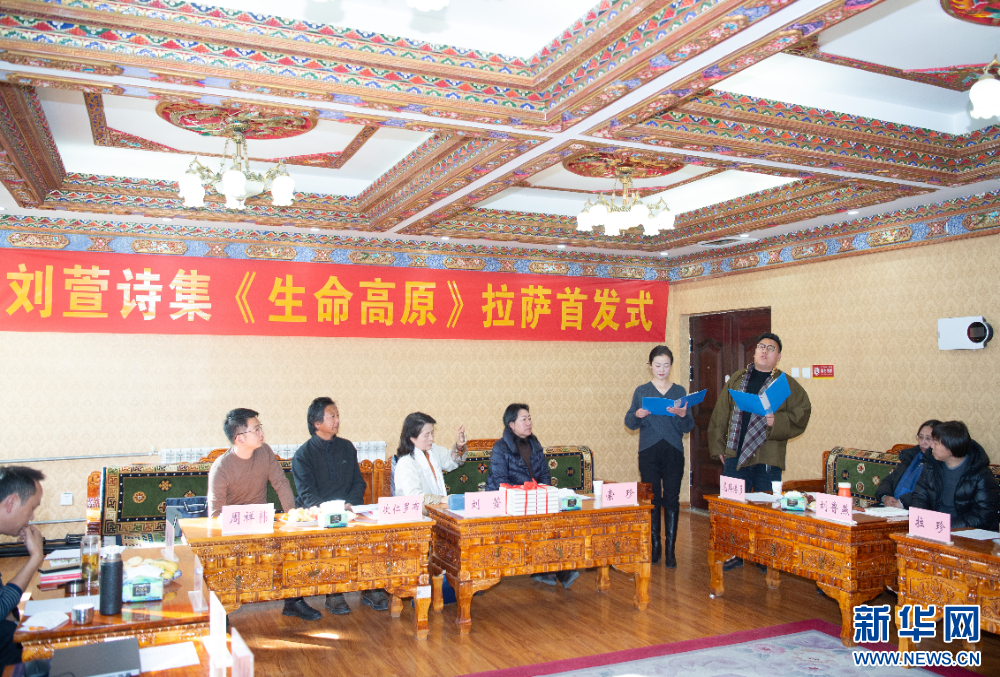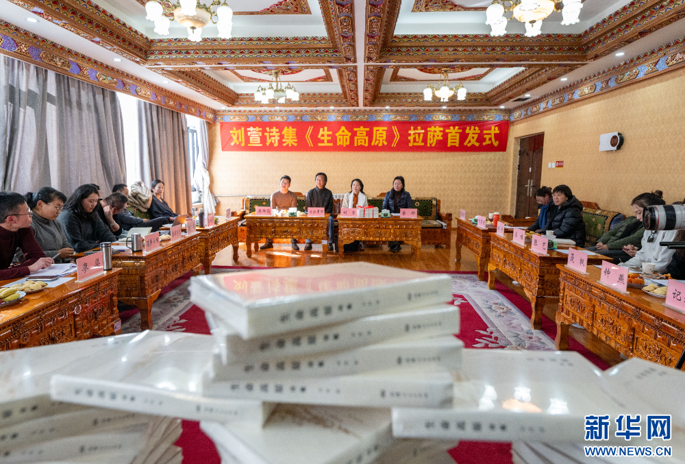 1月15日,劉萱詩集《生命高原》拉薩首發(fā)式活動現(xiàn)場。新華網(wǎng) 旦增努布 攝