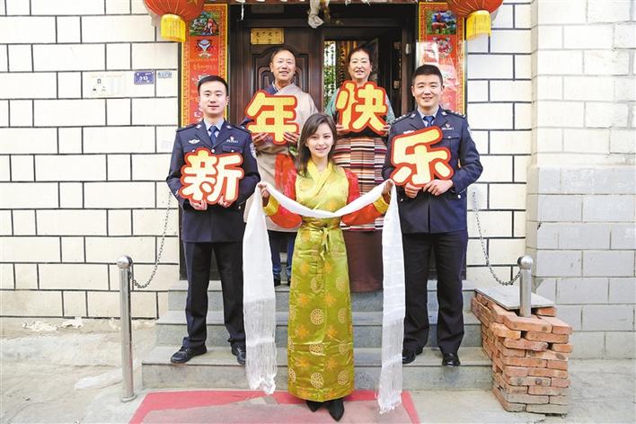 連日來,西藏出入境邊防檢查總站執(zhí)法調(diào)查支隊以“百萬警進千萬家”活動為依托,開展“民族團結(jié)一家親,民警結(jié)親賀新春”為主題的“尋親之路”?;顒又校蠹夜餐瑨炱鸺t燈籠,貼上春聯(lián),共致新春祝福。圖為結(jié)親民警在家門口合影。唐睿 仁青旺堆 攝