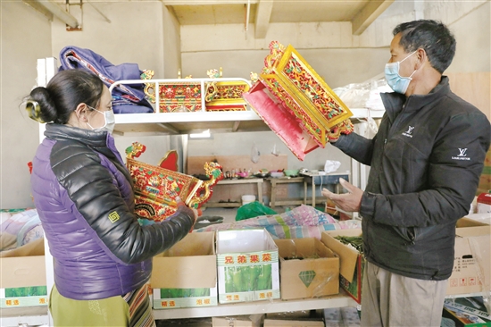 西藏拉薩市堆龍德慶區(qū)凈土公司在易地扶貧搬遷點(diǎn)設(shè)置了年貨直銷點(diǎn),各種年貨種類豐富、供應(yīng)充足、價(jià)格便宜,方便居民群眾就近就便購(gòu)買。