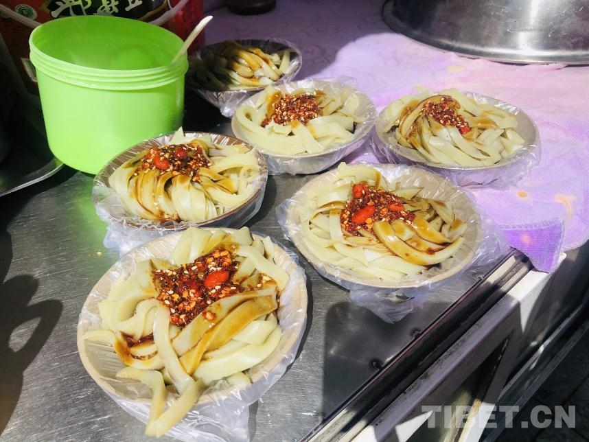 中國西藏網(wǎng)訊 在四川省甘孜藏族自治州甘孜縣城的大街小巷,你可以看到這樣的小車攤位,人們在閑暇之時會圍坐在這里吃涼粉,甘孜的涼粉以豌豆淀粉制作而成,因口味純正、風(fēng)味地道而深受人們的喜愛。在這暖春里,有了美味的涼粉作伴,仿佛也會變得更溫暖。