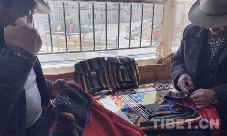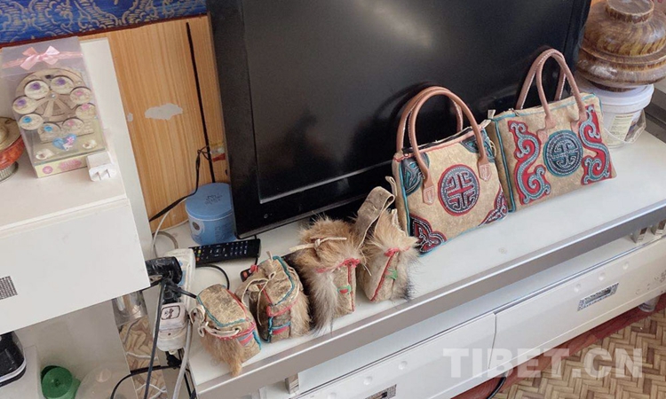 居家的員工們各自縫制著牛皮包、帽子、小掛件等藏族傳統(tǒng)物件,裁片、組合、縫制……一道道工序在他們勤勞的雙手上有條不紊地進(jìn)行著。