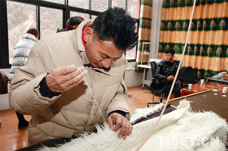 圖為扎西江村師傅手工縫制藏裝 攝影:陳衛(wèi)國