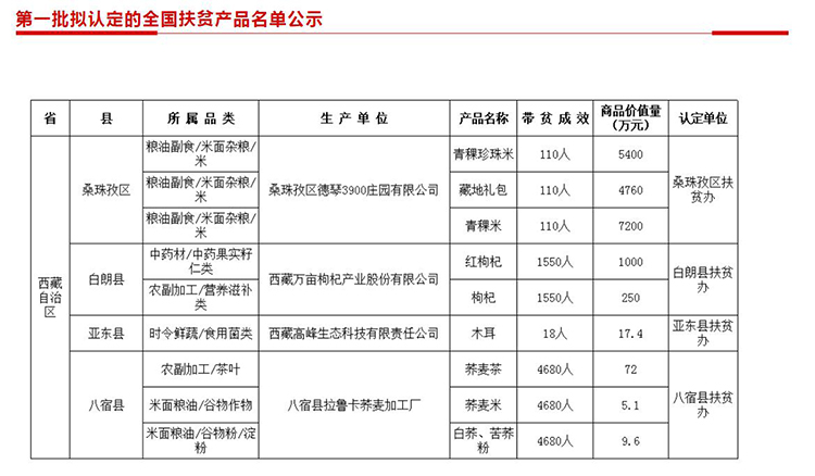 首批《全國扶貧產(chǎn)品名單》公布 西藏四縣區(qū)產(chǎn)品上榜
