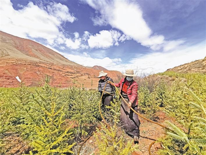 西藏昌都市丁青縣覺恩鄉(xiāng)絨通村苗木種植項(xiàng)目總投資2000萬元,采取“公司+基地+農(nóng)戶”的運(yùn)作模式。2018年底,基地開工建設(shè),93戶農(nóng)戶以每畝每年1000元的價(jià)格參與500畝的土地流轉(zhuǎn),項(xiàng)目實(shí)施階段共計(jì)880人次的貧困戶參與了務(wù)工。至2019年6月,已成功栽下云杉、昌都楊、柳樹、榆樹4個(gè)品種,共計(jì)97萬株樹苗。目前,在基地長期務(wù)工的村民有8名,年收入近2萬元。