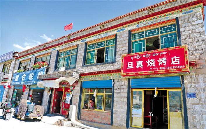 因特殊的家庭情況,旦增卓嘎家在2015年被評定為建檔立卡貧困戶,但這并沒有使他們產(chǎn)生惰性,喪失拼搏的勇氣?!懊撠氈赂浑x不開政府和各級干部的幫助,但更主要的還是要靠自己的努力,靠自己的雙手,不能只等著政府救濟(jì)?!痹鯓硬拍苤\一條更好的出路,讓日子過得寬裕起來?這些問題時(shí)??M繞在旦增卓嘎心頭。2015年,旦增卓嘎察覺到燒烤這一塊有很大的商機(jī),自家周圍沒有一家燒烤店。在和丈夫商量后,她利用自家房屋開設(shè)了旦真燒烤店,早上賣早餐,下午賣小吃茶點(diǎn),晚上賣燒烤。