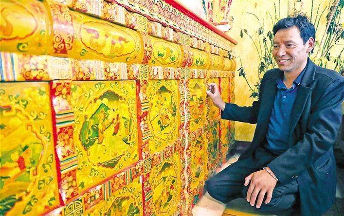 米瑪繪制的藏式家具。記者 劉斯宇 格桑倫珠 攝