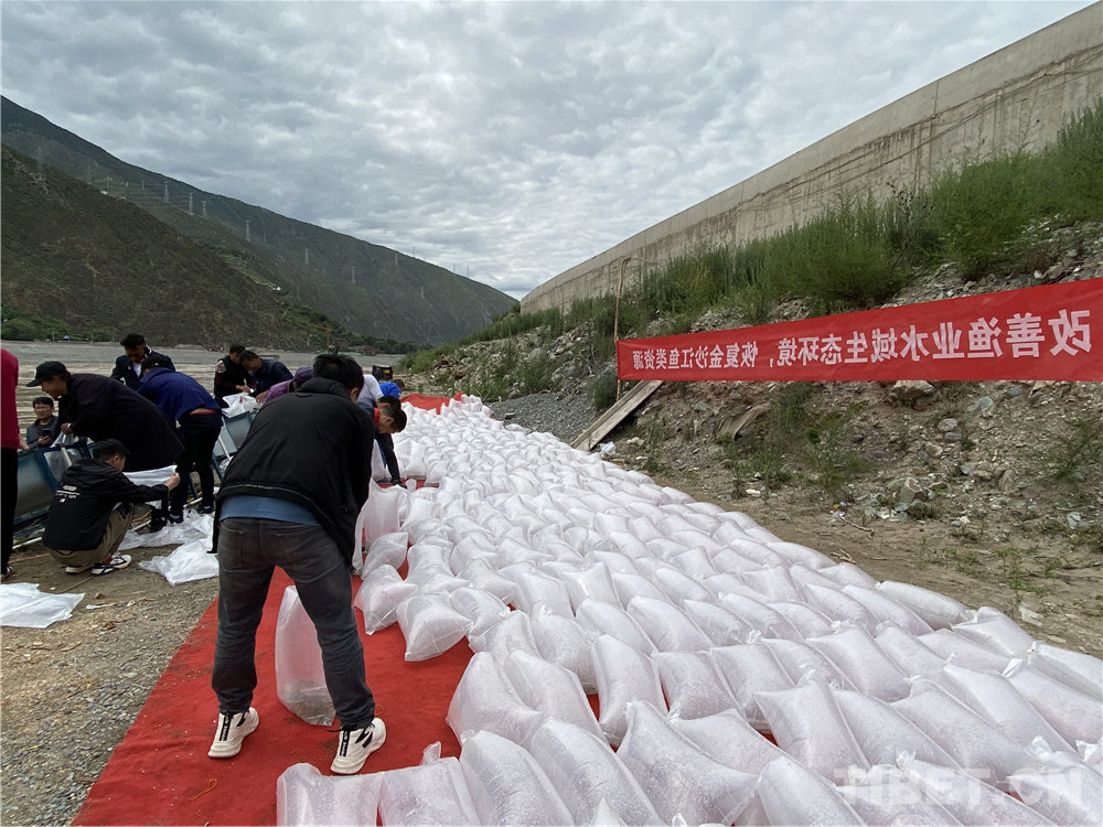 在工作人員協(xié)助下,老阿媽把一袋袋魚苗放入江中。據(jù)老阿媽說(shuō),當(dāng)年十八軍進(jìn)藏路過(guò)這里,帶的糧食不多,他們不向當(dāng)?shù)厝苏骷Z,有些人餓得浮腫。江河中的魚兒好抓,但沒(méi)有一個(gè)戰(zhàn)士違反紀(jì)律去抓魚。藏族敬畏魚,不捕魚,不吃魚。解放軍尊重當(dāng)?shù)仫L(fēng)俗,即使餓死也不抓魚充饑。