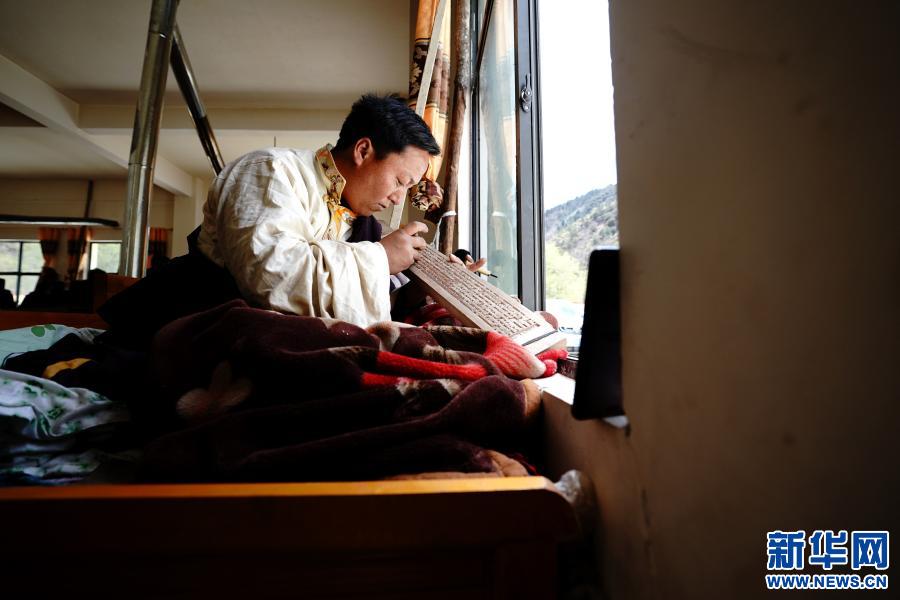 在西藏昌都市江達(dá)縣波羅鄉(xiāng)木松民族手工藝有限責(zé)任公司,波羅鄉(xiāng)村民白瑪加村在制作木刻(5月1日攝)。白瑪加村2017年開始學(xué)習(xí)波羅木刻,如今已經(jīng)出師,成為一個(gè)熟練的木刻藝人,一個(gè)月能制作6塊木刻作品,每個(gè)月有4000多元的收入。新華社記者 詹彥 攝
