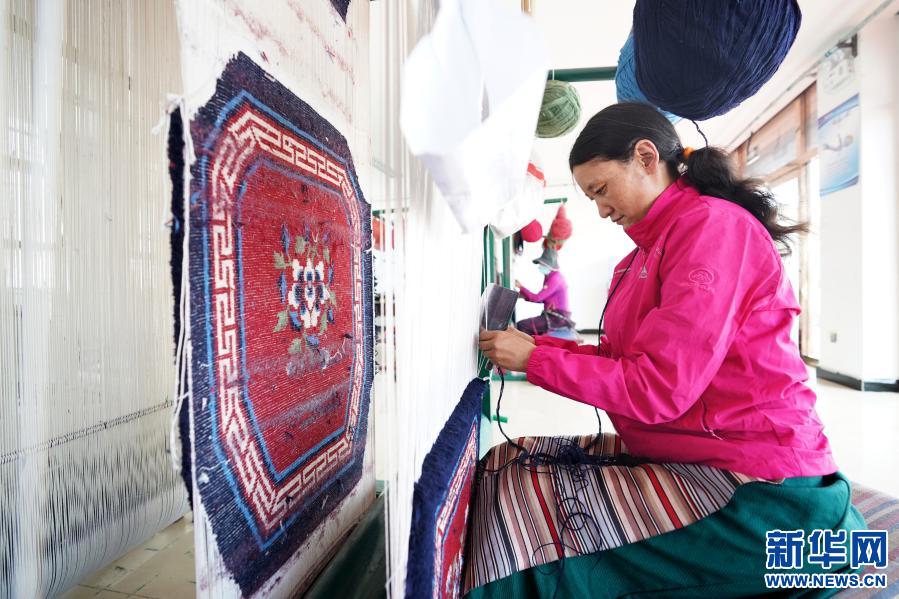 西藏阿里地區(qū)改則縣麻米鄉(xiāng)村民崗增在噶爾縣康樂新居服裝地毯加工廠里工作(7月25日攝)。2017年,崗增和家人搬遷到噶爾縣康樂新居易地扶貧搬遷安置點(diǎn),住進(jìn)了125平方米的新居。崗增還就近在安置點(diǎn)的服裝地毯加工廠找到了工作,每個(gè)月有3000元左右的收入。新華社記者 詹彥 攝