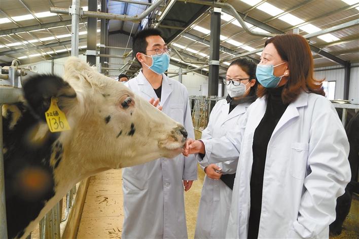 圖為達(dá)孜區(qū)高標(biāo)準(zhǔn)良種奶牛養(yǎng)殖示范中心的工作人員在巡檢牛場。 記者 李洲 攝