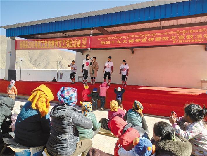 西熱組織大學生在基層開展防治艾滋病公益宣傳和文藝演出活動。