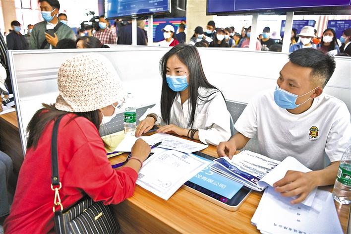圖為求職人員在咨詢崗位信息。記者 次旺 唐斌 攝