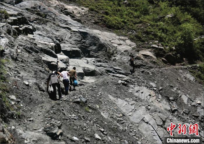圖為農(nóng)行墨脫縣支行員工徒步進(jìn)行流動(dòng)金融服務(wù)?!∧摽h支行供圖