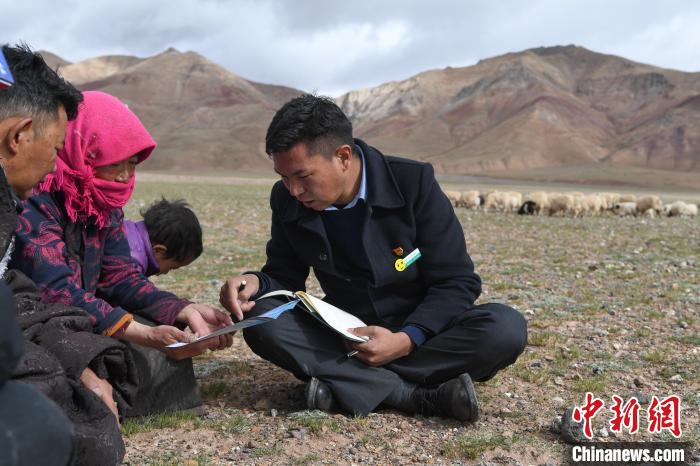 圖為農(nóng)行雙湖縣支行工作人員深入牧區(qū)開展金融流動服務(wù)。(資料圖) 貢嘎來松 攝