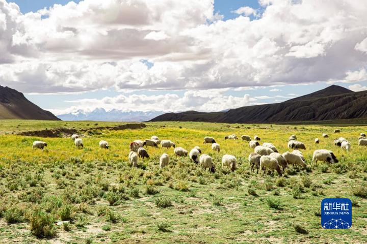 在海拔4000多米的一片天然牧場上,一群頭黑身白的小羊在陽光下愜意吃草。這些羊的耳朵上都掛著一個貼有二維碼的小吊牌,用格勒巴桑的話來說,這是崗巴羊的“身份證”。