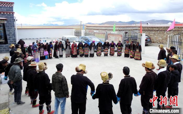 圖為普瑪江塘鄉(xiāng)民眾載歌載舞。 浪卡子縣網(wǎng)信辦供圖