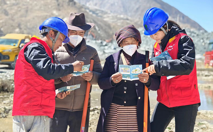 國(guó)網(wǎng)曲水縣供電公司共產(chǎn)黨員服務(wù)隊(duì)在拉薩市曲水縣茶巴拉鄉(xiāng)色麥村開(kāi)展春耕春灌安全用電宣傳(4月7日攝)。國(guó)網(wǎng)西藏電力供圖 旦增央卓 攝