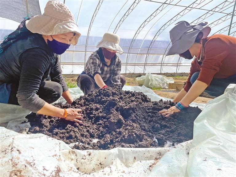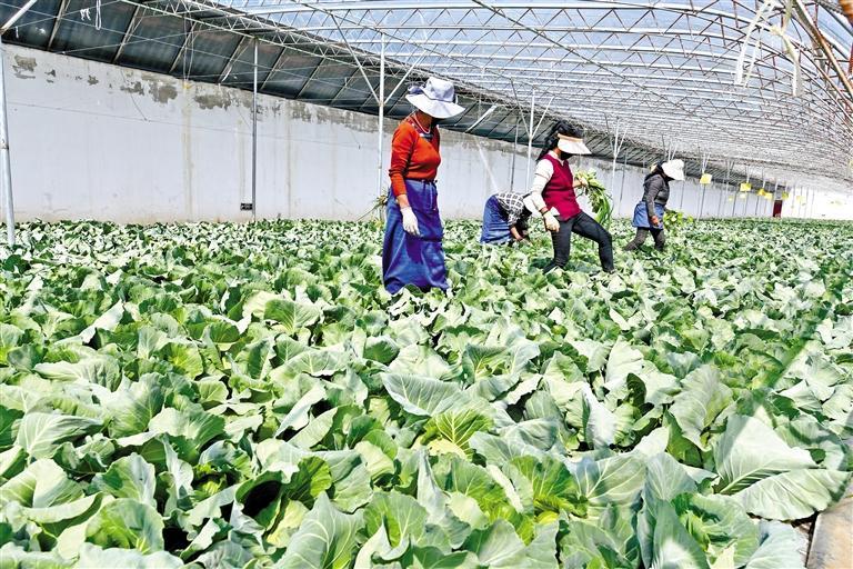 某農業(yè)科技公司的員工在大棚里工作。 記者 旦增蘭澤 攝