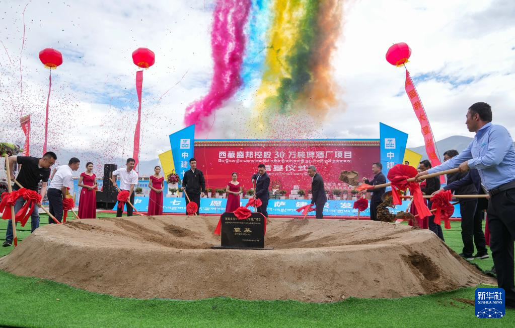 7月5日拍攝的拉薩市年產(chǎn)30萬噸啤酒建設(shè)項(xiàng)目奠基儀式現(xiàn)場。新華社記者 晉美多吉 攝