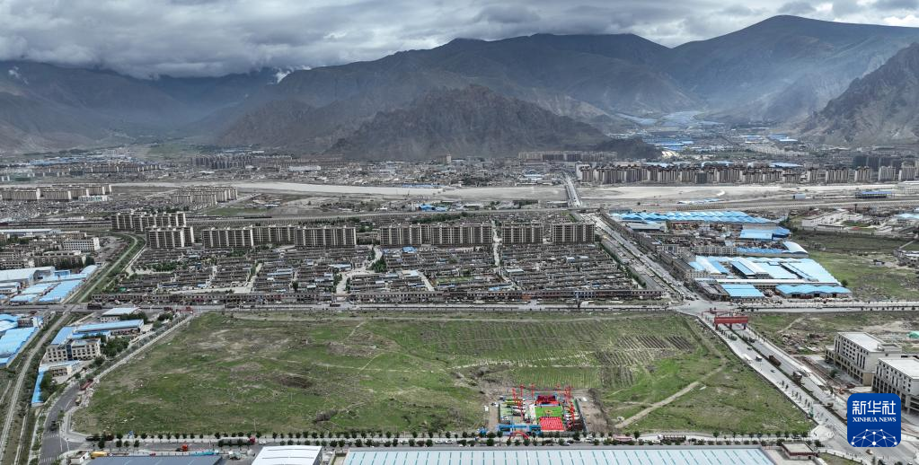 7月5日拍攝的拉薩市年產(chǎn)30萬噸啤酒建設(shè)項(xiàng)目奠基儀式現(xiàn)場(無人機(jī)照片)。新華社記者 晉美多吉 攝