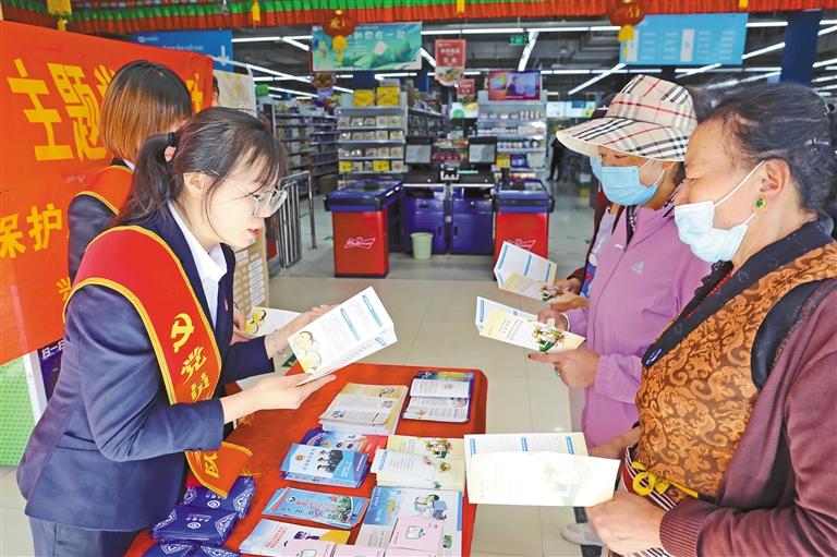 圖為興業(yè)銀行拉薩分行志愿者開展金融知識(shí)宣傳。