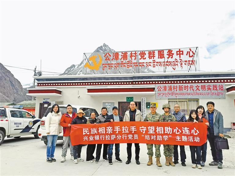 圖為興業(yè)銀行拉薩分行開展黨員“結(jié)對(duì)助學(xué)”主題活動(dòng)時(shí)的合影。