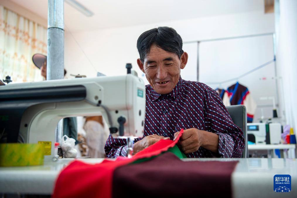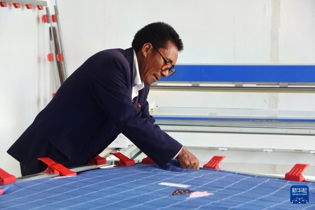 一位村民在裁剪布料(8月24日攝)。新華社發(fā)(旦增努布 攝)
