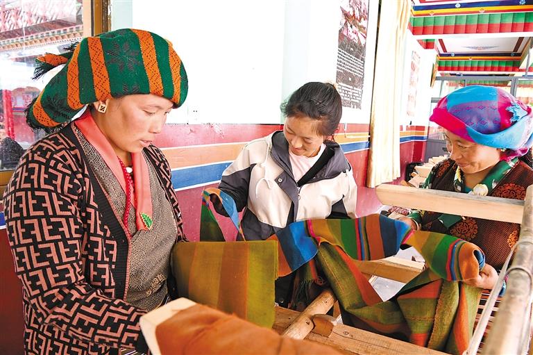 圖為日喀則市仁布縣康雄鄉(xiāng)亞德細褐羊毛織品農(nóng)民專業(yè)合作社的編制能手在傳授編制技藝。記者 李洲 攝