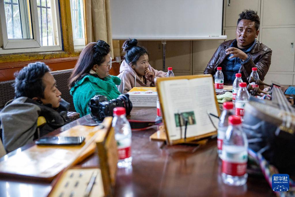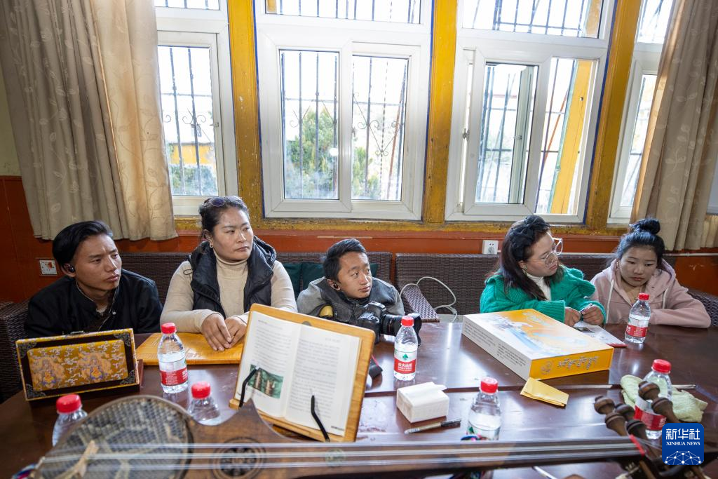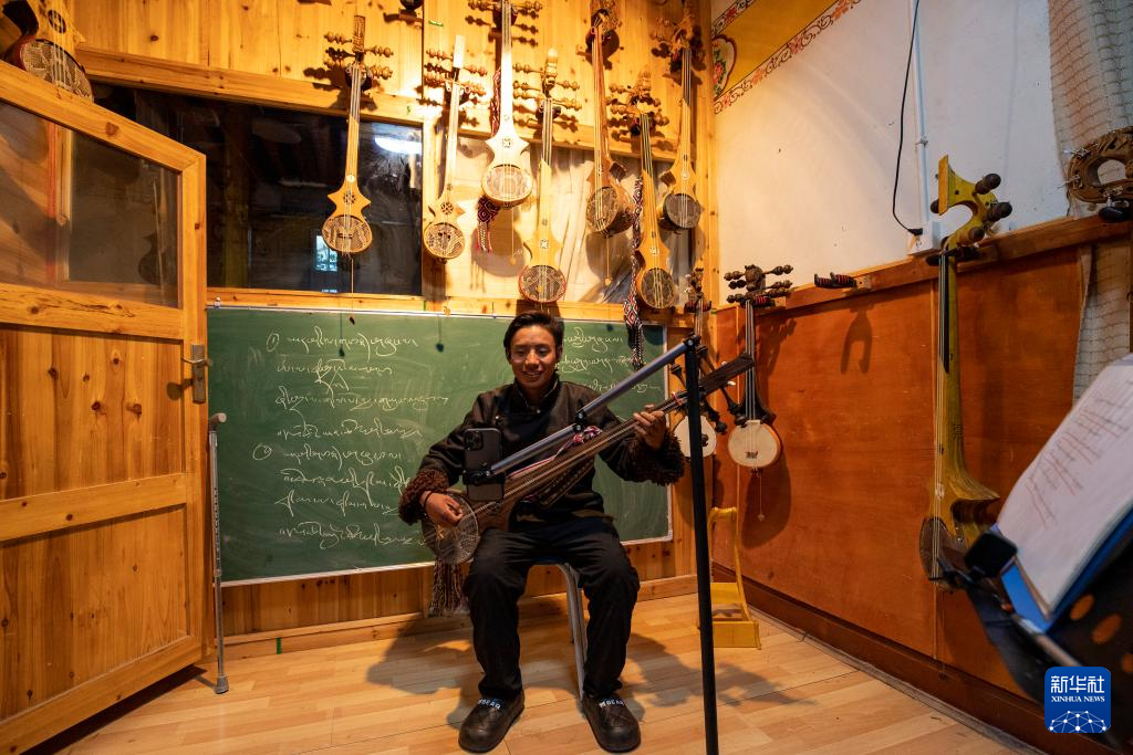 西藏拓崗文化傳播有限公司主播邊桑在直播銷(xiāo)售西藏傳統(tǒng)樂(lè)器扎念琴(11月10日攝)。新華社記者 姜帆 攝
