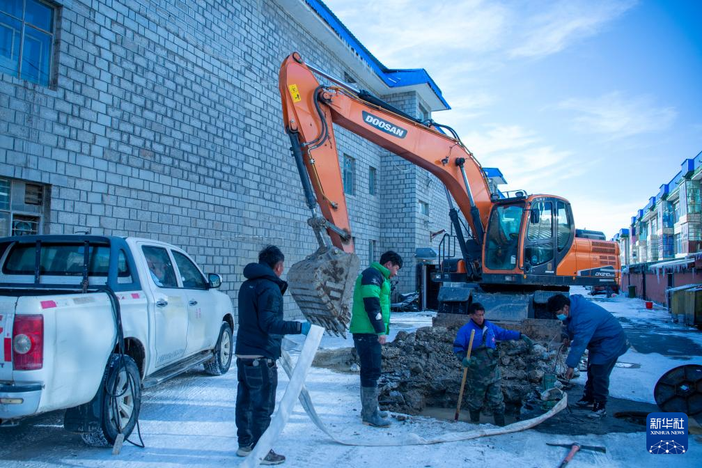 12月15日,加才曲達和同事們一起搶修地下管網(wǎng)。新華社發(fā)(旦增努布攝)