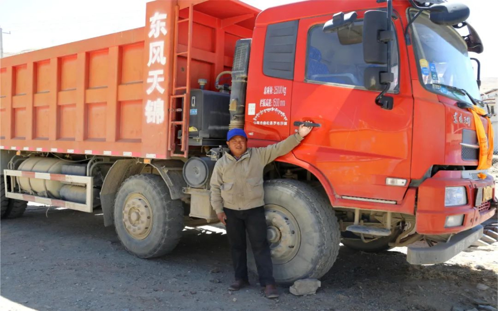 圖為運(yùn)輸車(chē)隊(duì)司機(jī)次旦多吉和他的貨車(chē)。