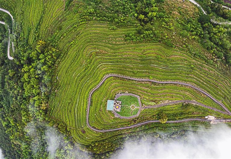 墨脫縣背崩鄉(xiāng)格林村茶園(無人機照片)。新華社記者 姜帆 攝
