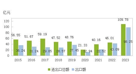 圖7 2015-2023年貨物進出口總額