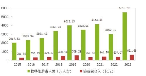 圖10 2015-2023年接待旅游者人數(shù)和旅游總收入