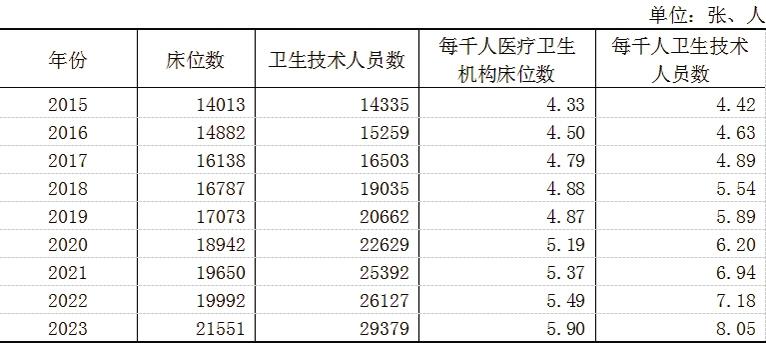 表4 衛(wèi)生機構床位數(shù)和技術人員數(shù)
