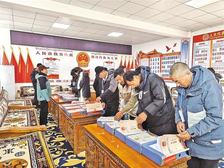 圖為考察人員在錯(cuò)那學(xué)習(xí)當(dāng)?shù)剜l(xiāng)村振興、基層治理、民族團(tuán)結(jié)和壯大村集體經(jīng)濟(jì)等方面的工作經(jīng)驗(yàn)。記者 丹增平措 攝