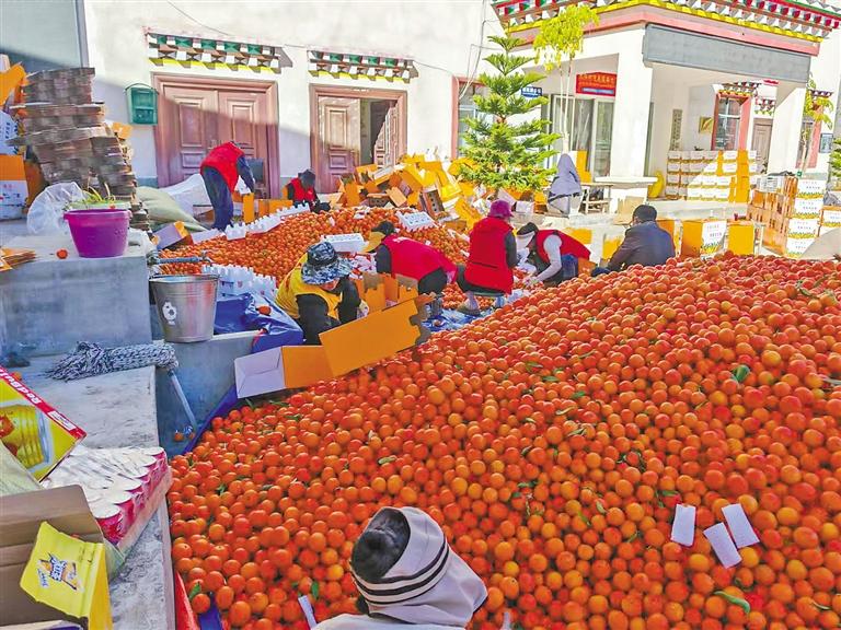在芒康縣木許鄉(xiāng),一箱箱“康巴蜜桔”被村民精心打包,發(fā)往各地銷售。僅2024年,全鄉(xiāng)通過(guò)線下銷售累計(jì)賣出蜜桔14萬(wàn)斤,成為了當(dāng)?shù)厝罕娫鍪罩赂坏摹敖鸸印薄?/p>