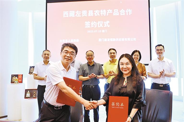 左貢縣政府與廈門建發(fā)恒融簽訂特色農(nóng)產(chǎn)品戰(zhàn)略合作協(xié)議。圖/文 記者 貢秋曲措