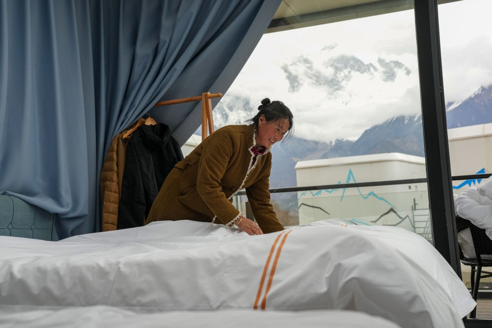 2025年4月4日,林芝索松村一家民宿的服務(wù)員在整理房間。近年來,林芝在生態(tài)保護(hù)與旅游發(fā)展的良性互動中,探索出“賞花+民宿”“賞花+文創(chuàng)”等復(fù)合經(jīng)營模式。2025年4月4日至4月6日期間,林芝市累計(jì)接待游客20.86萬人次,同比增長20.58%;實(shí)現(xiàn)旅游收入1.5億元,同比增長37.62%。