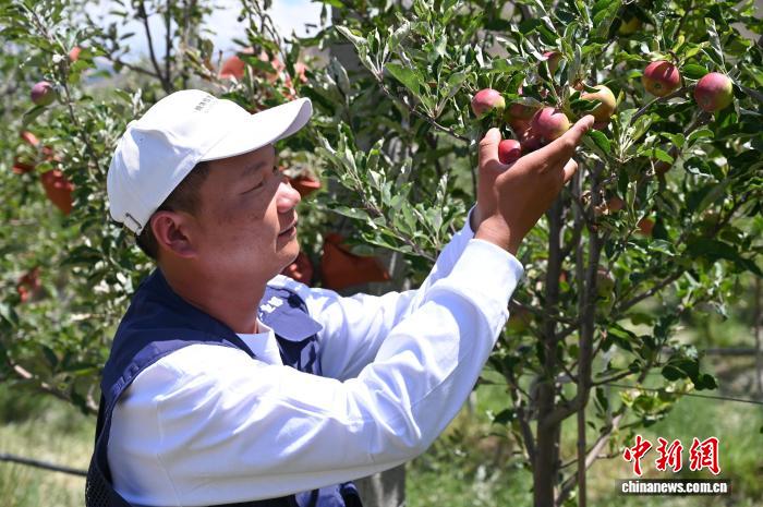 蘋果種植不僅“鎖”住了風沙,更帶來了“甜日子”。次仁卓嘎和眾多村民一樣,在基地就近務工獲得穩(wěn)定收入。李世銀介紹,僅附近的朗塞嶺村,幾乎每戶都有人在基地務工,每戶年增收約5萬元(人民幣,下同)至6萬元。該基地于2020年建設,現(xiàn)種植已達8200畝。2023年首銷4000畝蘋果,實現(xiàn)銷售額276萬元;2024年銷售額躍升至385萬元。產(chǎn)品不僅在西藏區(qū)內(nèi)及國內(nèi)其他省市銷售,去年還進入尼泊爾市場?!颁N路完全不用愁?!崩钍楞y信心滿滿。