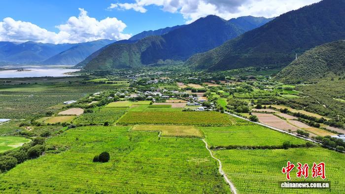 圖為米林市果樹林立的美麗鄉(xiāng)村。米林融媒體中心 供圖