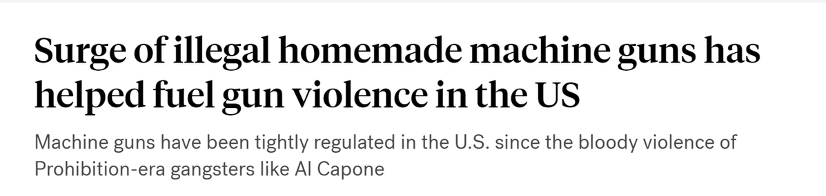 據(jù)報(bào)道,由于3D打印制作或在線購買的小型金屬或塑料零件的驚人增長,全美各地近年來都出現(xiàn)了使用經(jīng)改裝的全自動槍支制造的槍擊事件。盡管針對機(jī)槍的禁令可以追溯到上世紀(jì)二三十年代的禁酒令時(shí)期,但有關(guān)部門表示,格洛克開關(guān)、連發(fā)阻鐵等改裝零件的大量增加,使得普通人能夠?qū)⒑戏ǖ陌胱詣訕屩Ц难b得更加危險(xiǎn),進(jìn)而助長了槍支暴力。